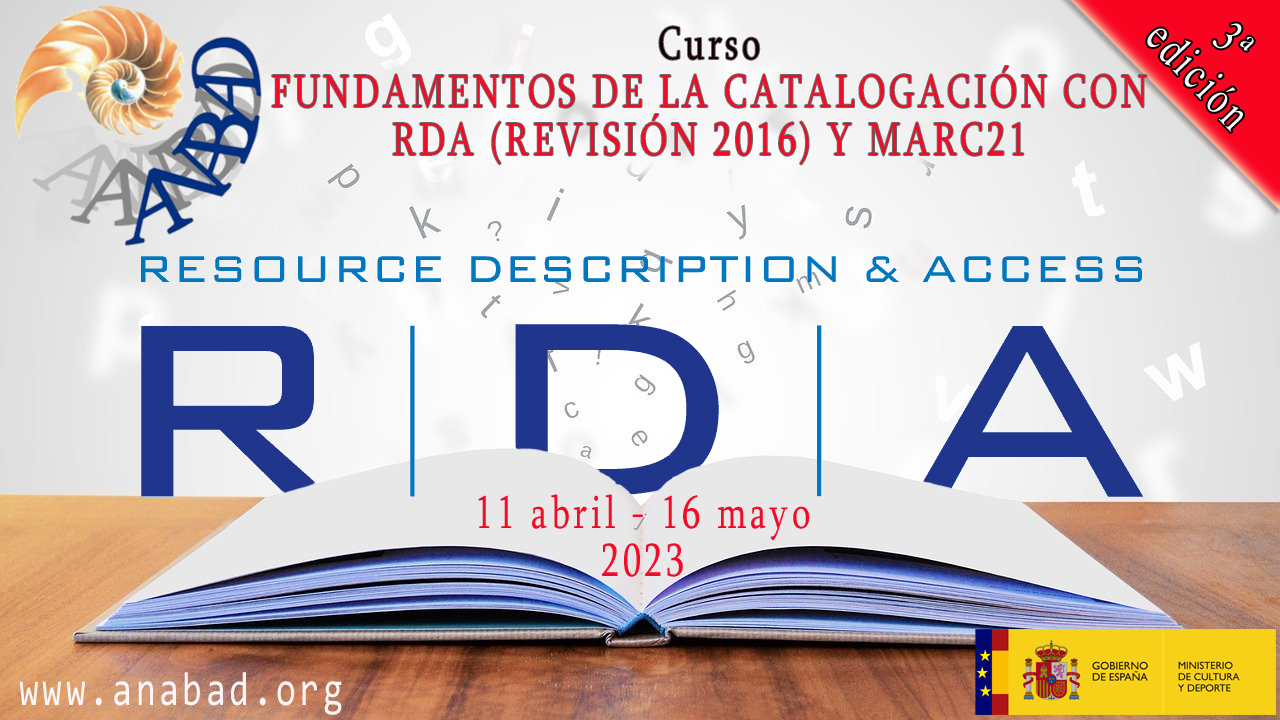Curso on line: FUNDAMENTOS DE LA CATALOGACIÓN CON RDA (Revisión 2016) Y MARC21. 3ª Edición