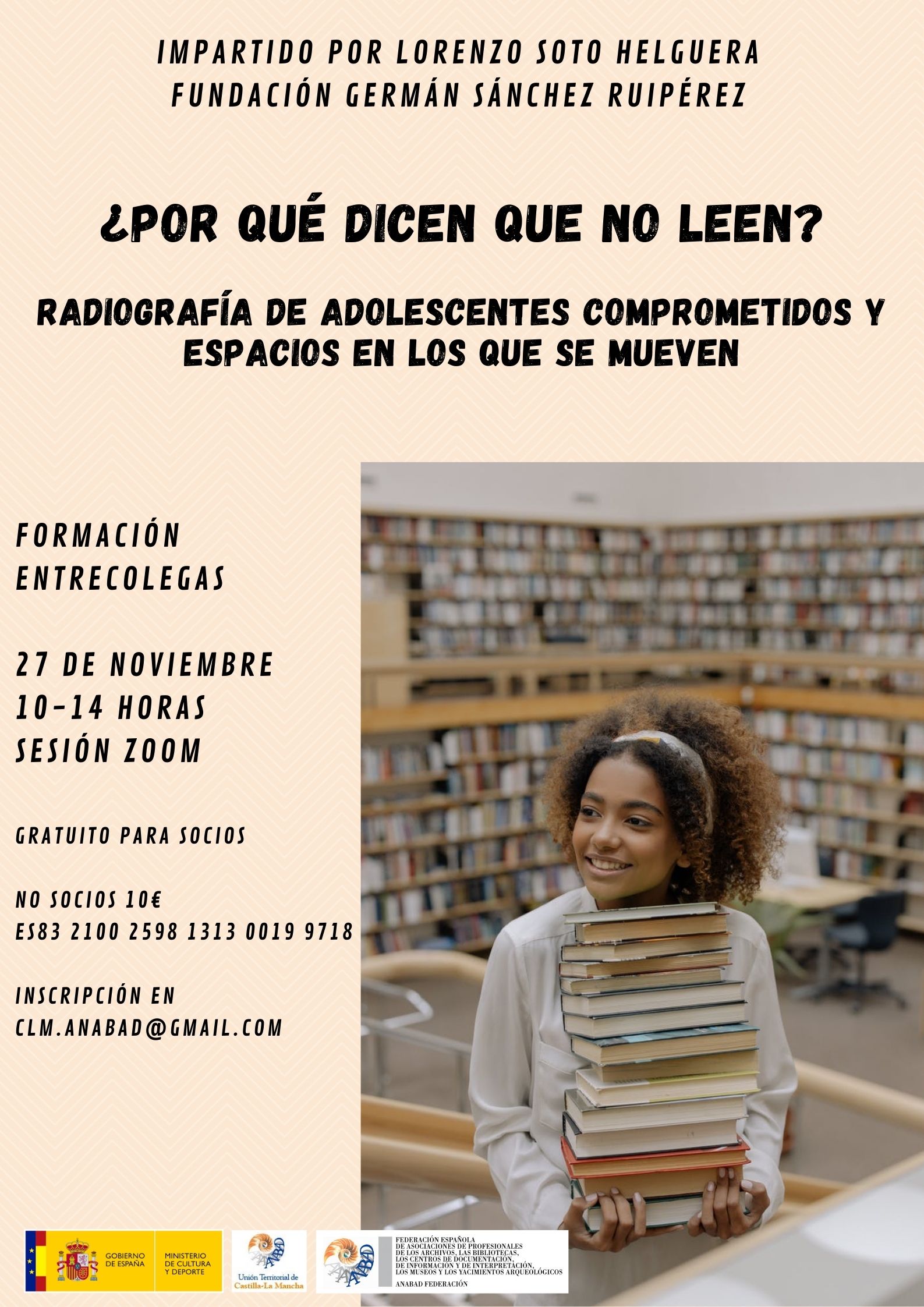 ANABAD Castilla La Mancha organiza Curso ¿Por qué dicen que no leen? Radiografía de adolescentes comprometidos y espacios en los que se mueven